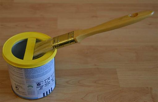 El pincel se puede escurrir y sostener sobre la tira central del aro (fig.4 y 5).